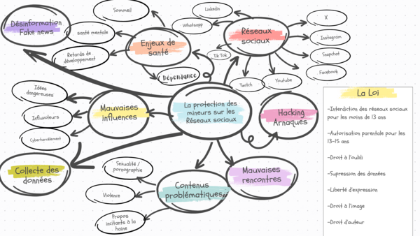 - séances en classe avec constitution de plusieurs groupes d'élèves pour réfléchir à la création de leur loi à partir de tous les éléments étudiés et discutés