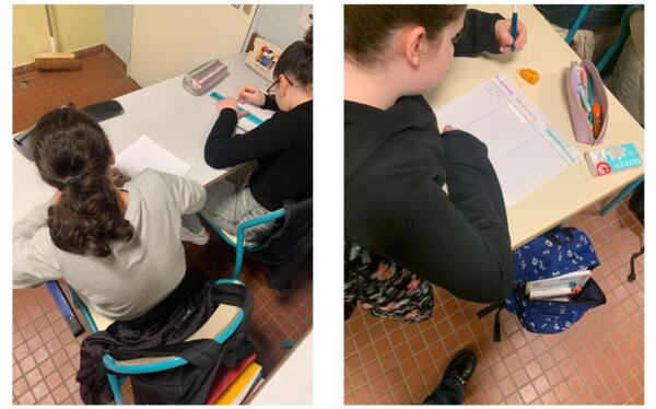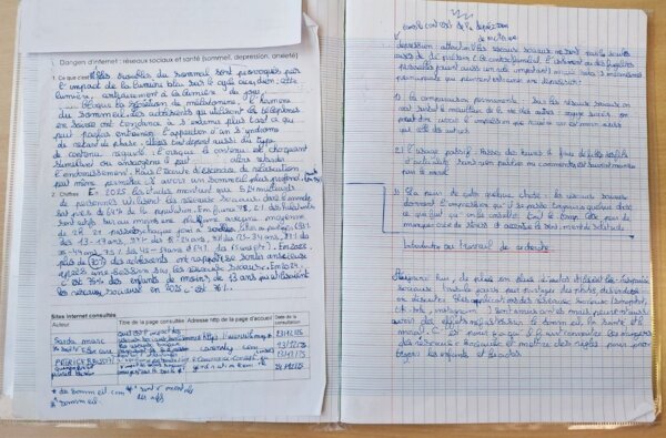 Puis, un autre jour, pendant deux heures, par groupes de trois, les élèves ont fait des recherches sur les différents dangers des réseaux sociaux pour les mineurs : cyberharcèlement, addiction au scrolling, défis dangereux en ligne, isolement, manipulation/ embrigadement et arnaques aux sentiments, escroqueries en ligne, santé (risques de dépression, d’anxiété, troubles du sommeil), exposition à des images violentes ou choquantes. Les élèves disposaient d’un document de collecte et d’un ordinateur par groupe. Ils avaient pour consignes de bien définir le danger étudié par leur groupe, de citer des sources fiables, ainsi que quelques chiffres-clés révélant l’ampleur de ce danger pour les mineurs. Ils ont poursuivi individuellement à la maison.