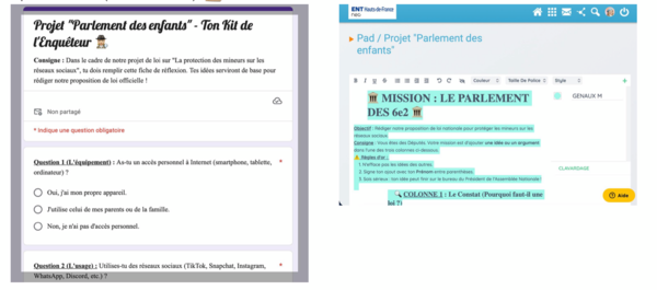 Puis, toujours par groupes de 3, les élèves ont rédigé leur travail dans un Framapad en réunissant les différentes contributions, d’après des axes précis : définition précise du danger étudié, arguments révélant l’ampleur du danger pour les mineurs, chiffres le prouvant et conclusion personnelle du groupe.
