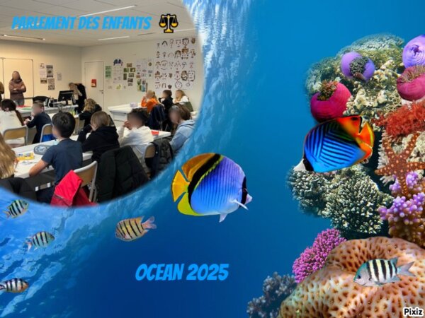 Notre travail de préparation et de réflexion à la 28e édition du Parlement des Enfants, sur le thème " la protection de la biodiversité marine" s'est déroulée en trois étapes.