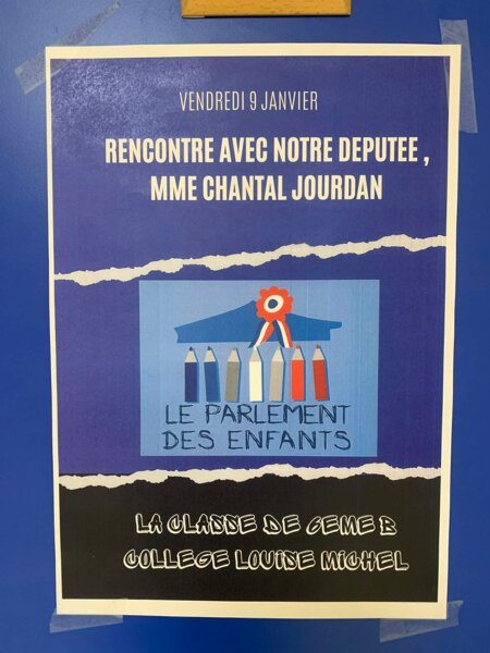 Début janvier, nous avons accueilli Mr le député Stéphane Hablot dans le cadre de notre participation au Parlement des enfants. Nous avions préparé des questions sur sa fonction, sur l’Assemblée Nationale et sur notre projet de loi sur la protection des mineurs de moins de 15 ans contre les réseaux sociaux. Il a répondu à nos questions, ce fût un moment d'échange et de partage enrichissant et joyeux.